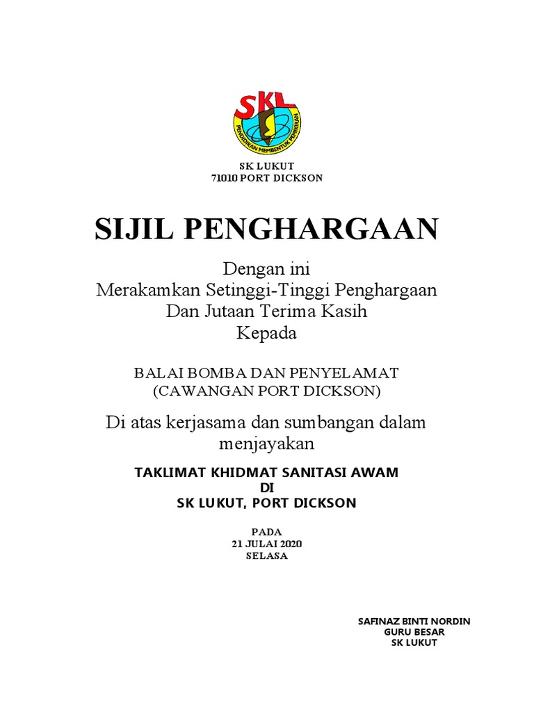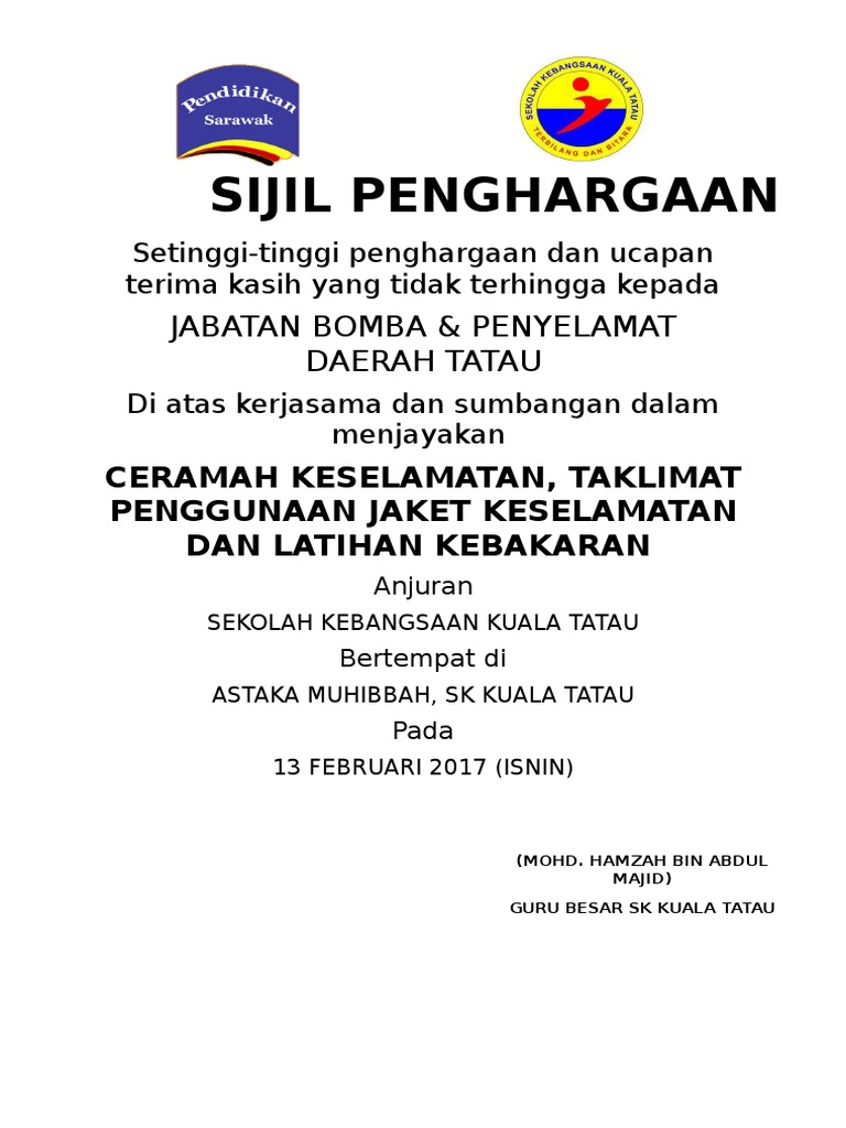 Sijil Penghargaan Fire Drill Pdf